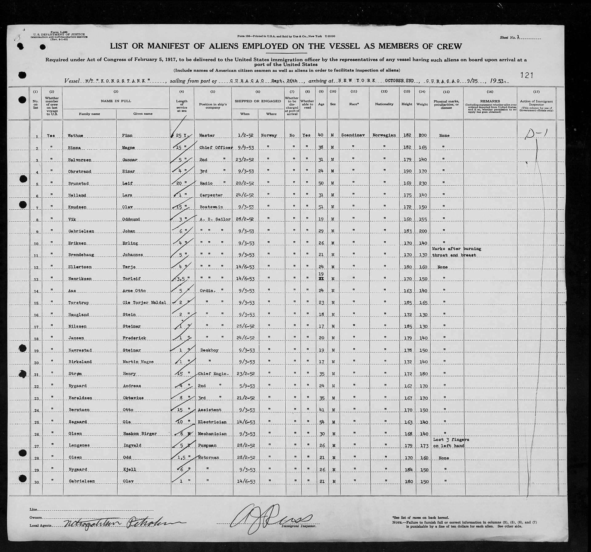 ank. Curacao 30/6 Aftenbladet 2/7-1953