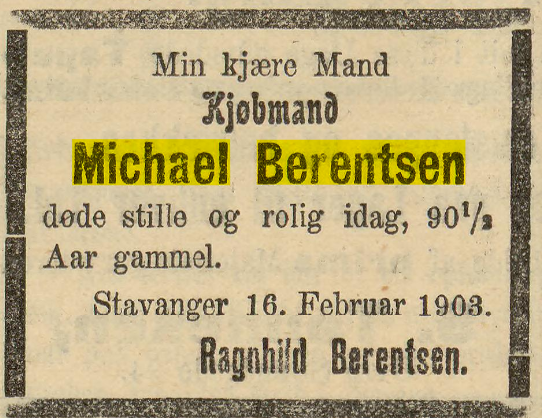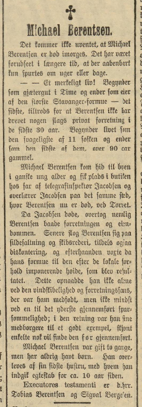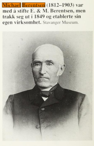 Kilde hvis annet ikke er oppgitt er Michalsen sin bok Stavanger sjøfarts historie : seilskibene og seilskibsfarten i aarene fra 1600 til 1922, Hans Storhaug sin bok Samfunnsbyggerne : tre generasjoner Berentsen i Stavanger og Ola Aursnes sin bok om Berentsen-Ætten.